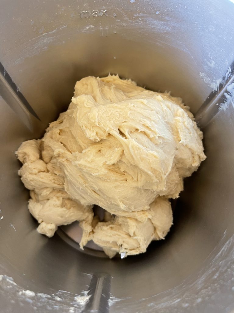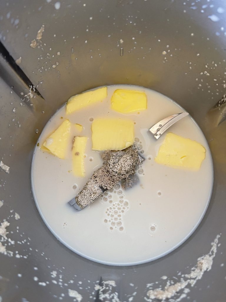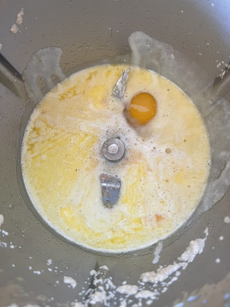 - Lăsati sa se răcorească ,apoi Adaugati ouăle și sarea și mixați 12 secunde/viteza 1;