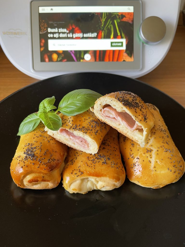 Ne-am gândit la un aluat pufos pe care l-am umplut cu mozzarella si șunca si uite așa am obținut niște pachetele delicioase.