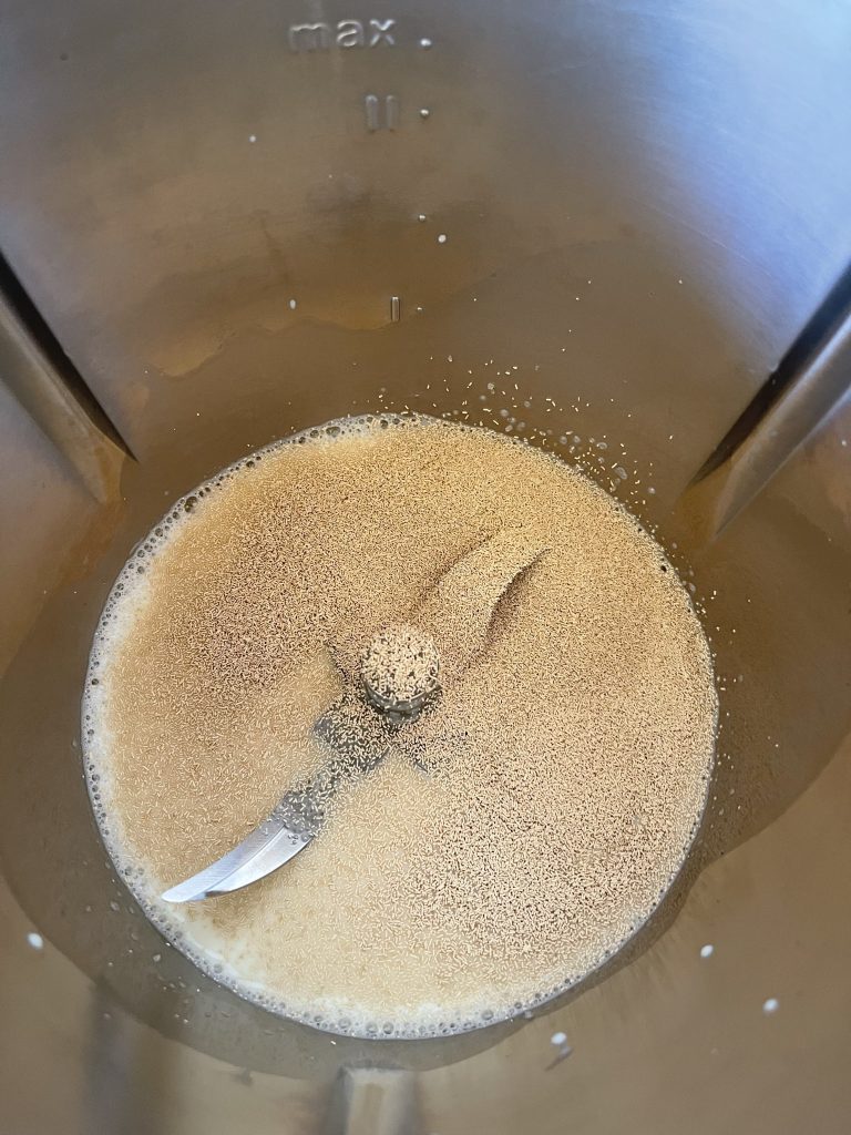 - Puneti in bol laptele, drojdia și zaharul și încălziți 3 minute/ 37 grade/ viteza 3;