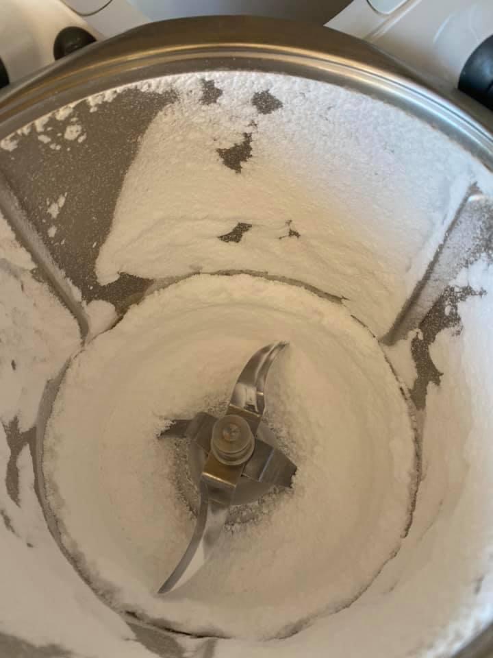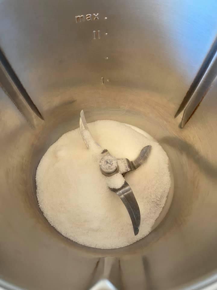 - Puneti in bol zaharul și pulverizați 30 sec/viteza 10;
