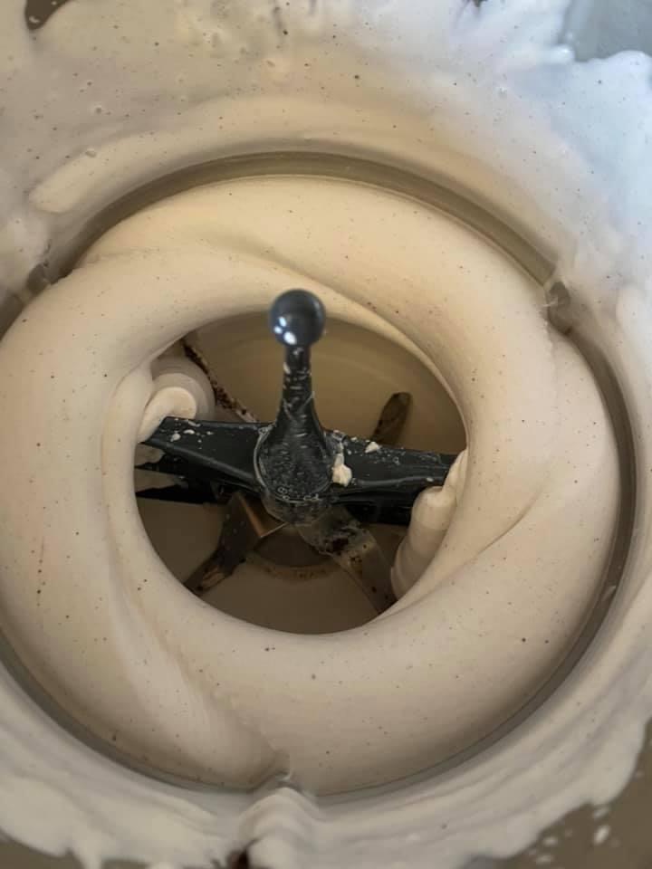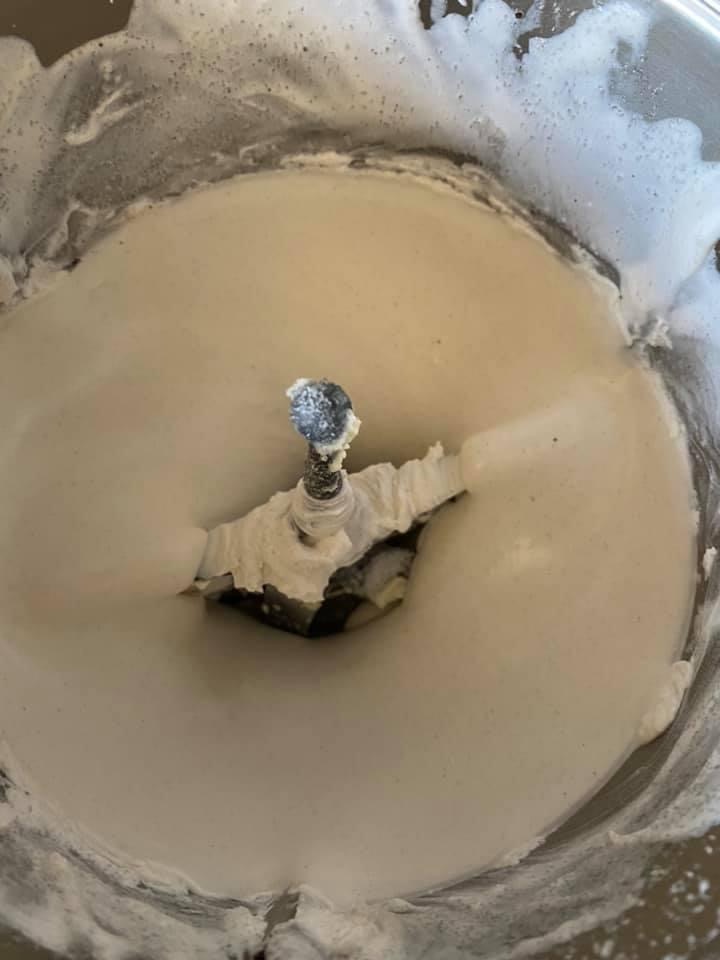 - Montati fluturele de amestecare pe cuțit in bol și Adaugati frișca lichida apoi bateți 1.30 min/vit 3;