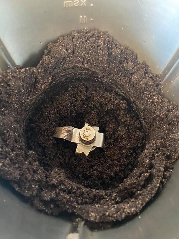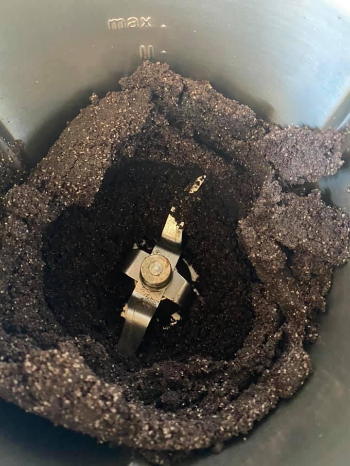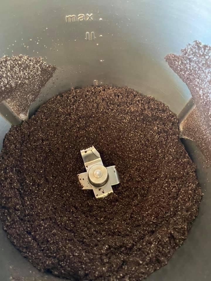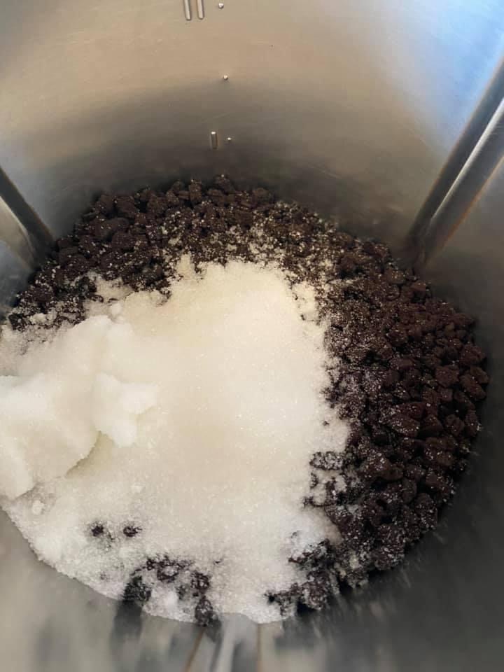 2.Puneti in bol granulele de biscuiti și 50 g de zahăr și mixați 20 sec/viteza 6