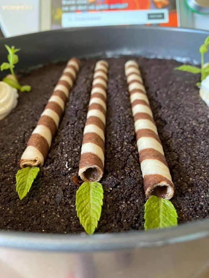 •Pentru decor: rulouri cu ciocolata,bezele,pudra de fistic