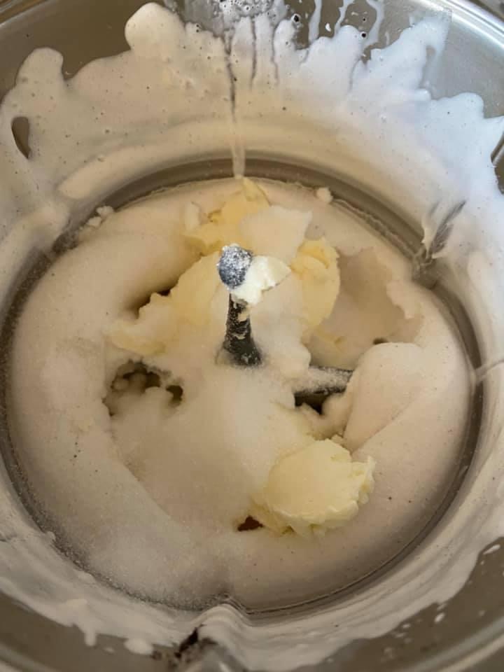 - Puneti in bol 150 g zahăr și mixați 10 sec/viteza 10 apoi răsturnați intr-un castron;