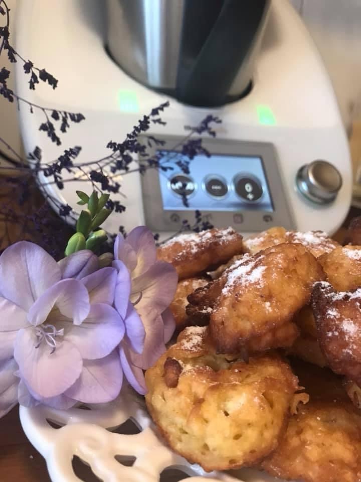 Câteva mere, o portocala, alte câteva ingrediente plus harnicul Thermomix cu Rețetele lui incredibile și…un-doi…gogoșile sunt deja gata de servit!