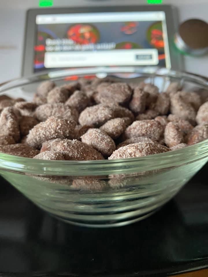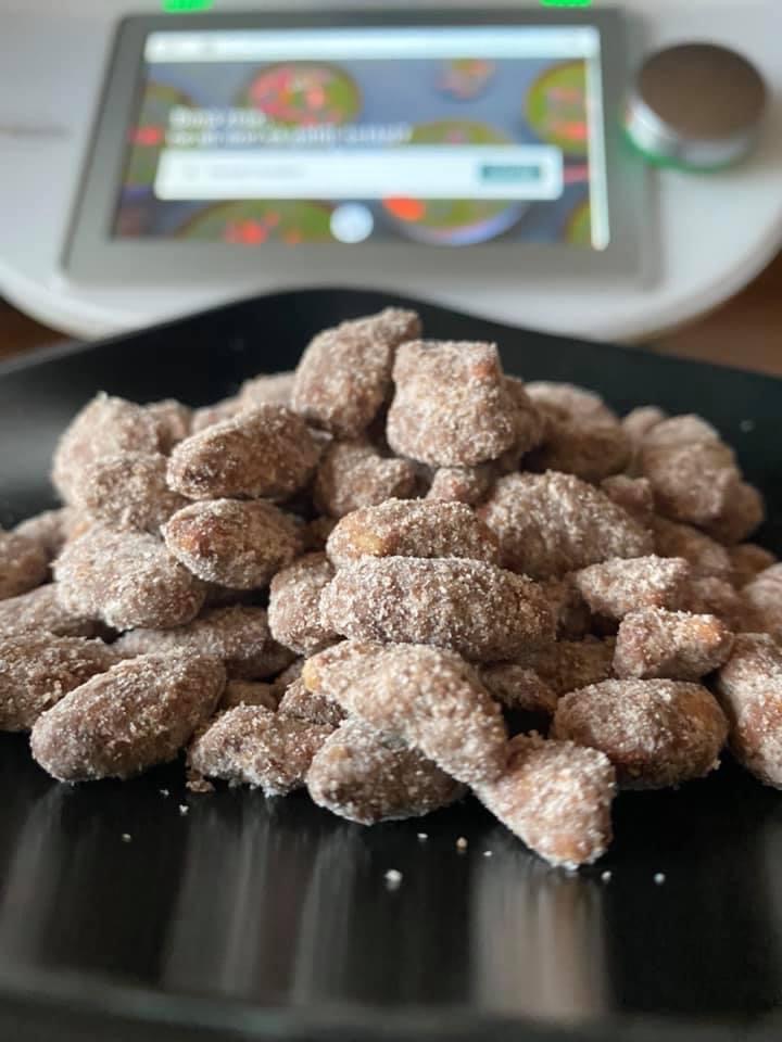 - Răsturnați nucile și migdalele in zahăr și amestecați bine pana se separa.