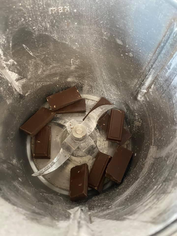 - Puneti in bol ciocolata și maruntiti 3 sec/vit 6;