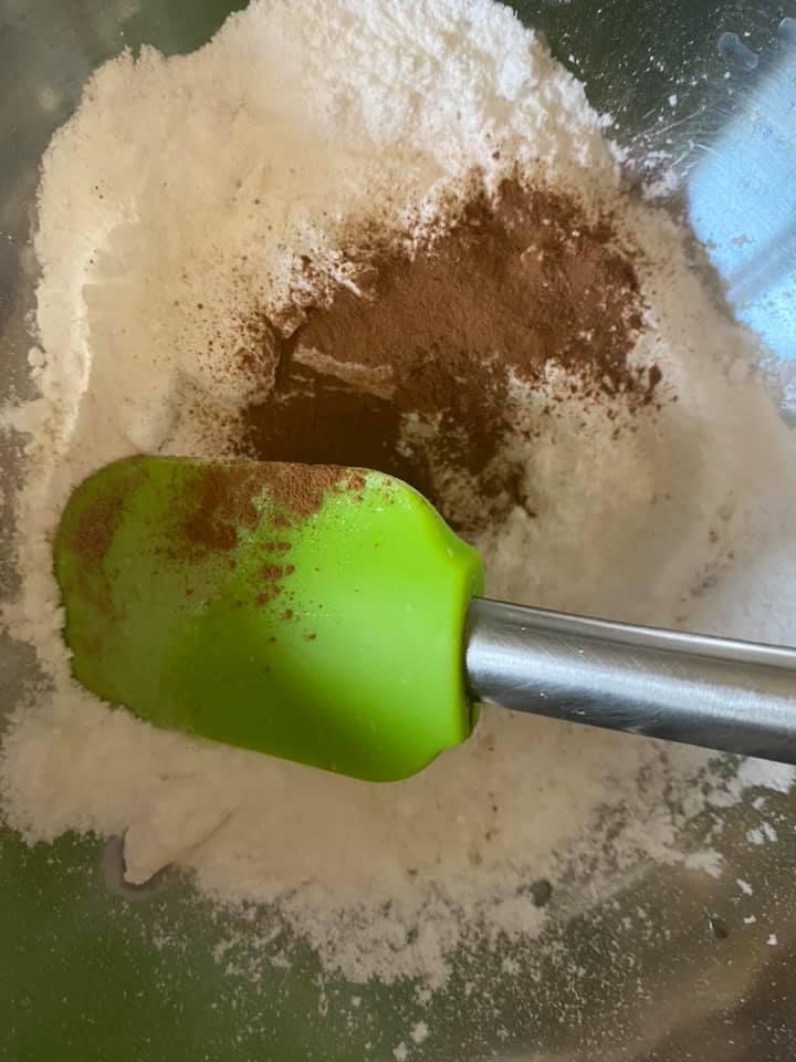 - Puneti in bol zaharul și pulverizați 10 sec/vit 10, apoi rasturanati-l intr-un bol măricel și amestecați-l cu Scorțișoara