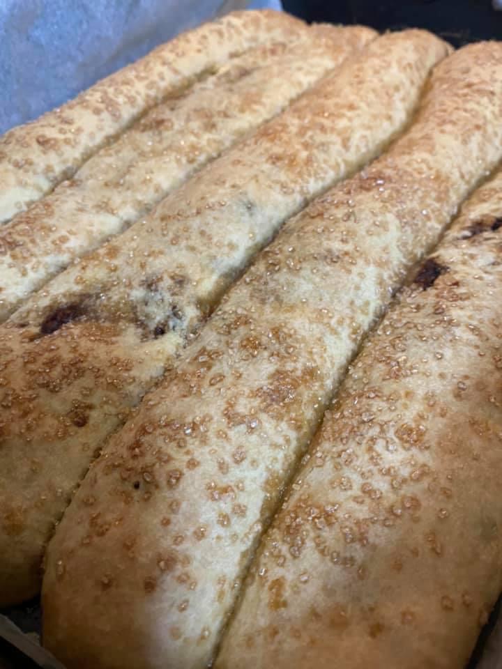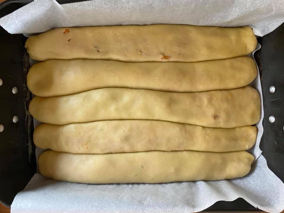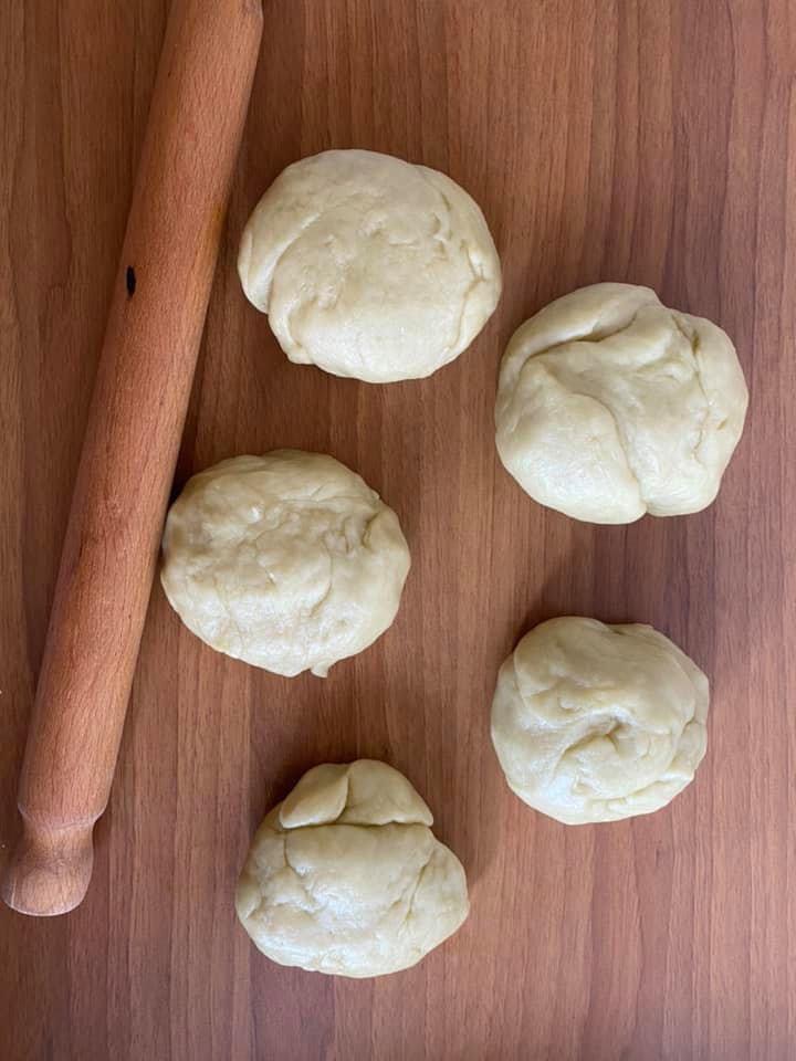 - Pe blatul de lucru răsturnați aluatul și împărțiți-l in 5 părți egale;