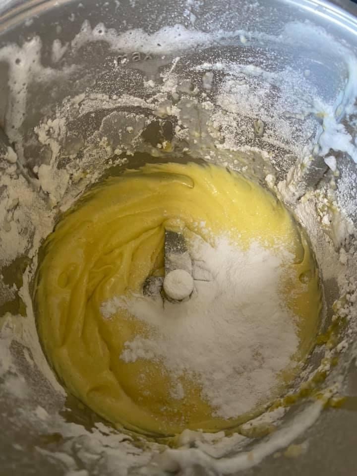 - Adaugati in bolul necurățat(dar fără fluture)gălbenușurile,zaharul, făina, laptele și uleiul și mixați 2 min/viteza 4