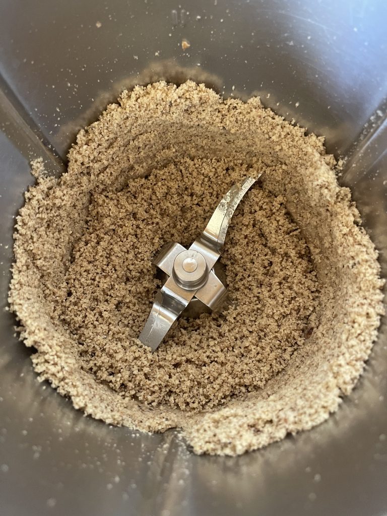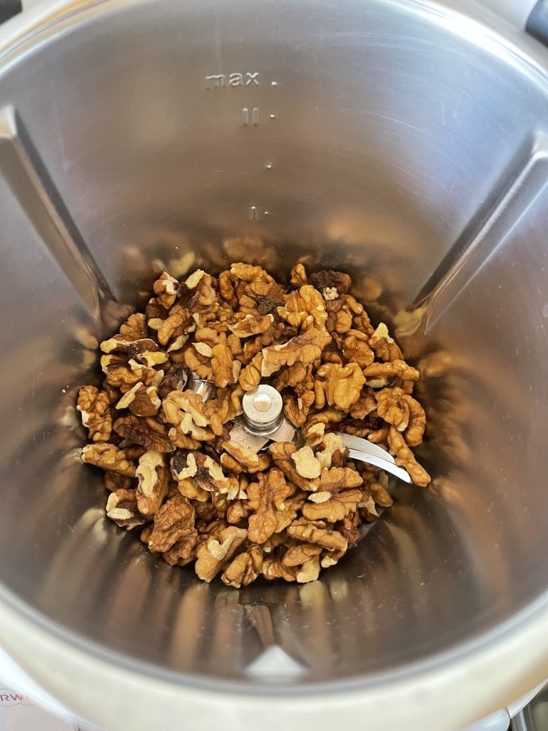 5. In bolul curat și uscat Puneti nucile și maruntiti 7 secunde/viteza 7;