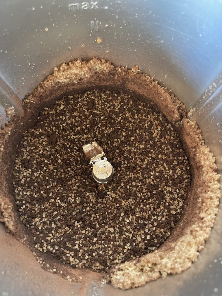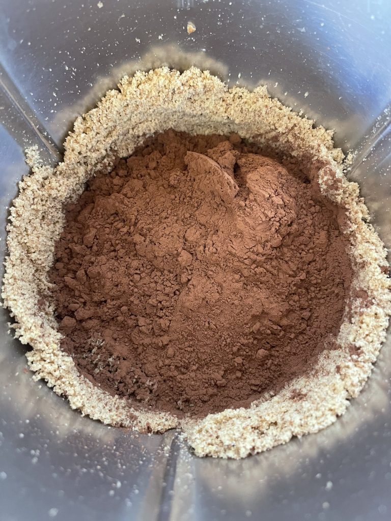 6. Adaugati zaharul brun, cacaua și și amestecați 5 secunde/viteza 3;