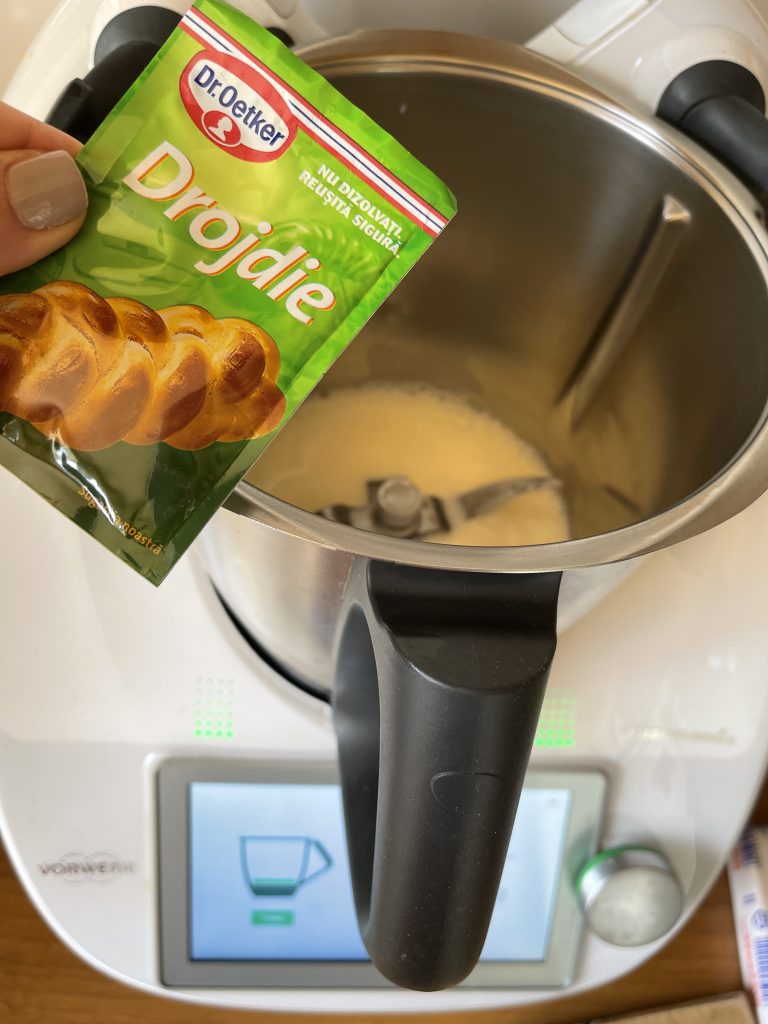 1. Puneti in bol laptele, drojdia și zaharul 1 minut/37 grade/viteza 2;