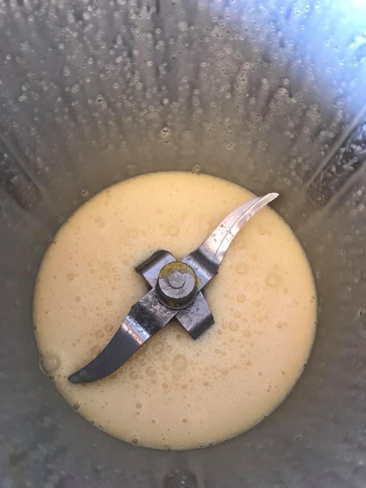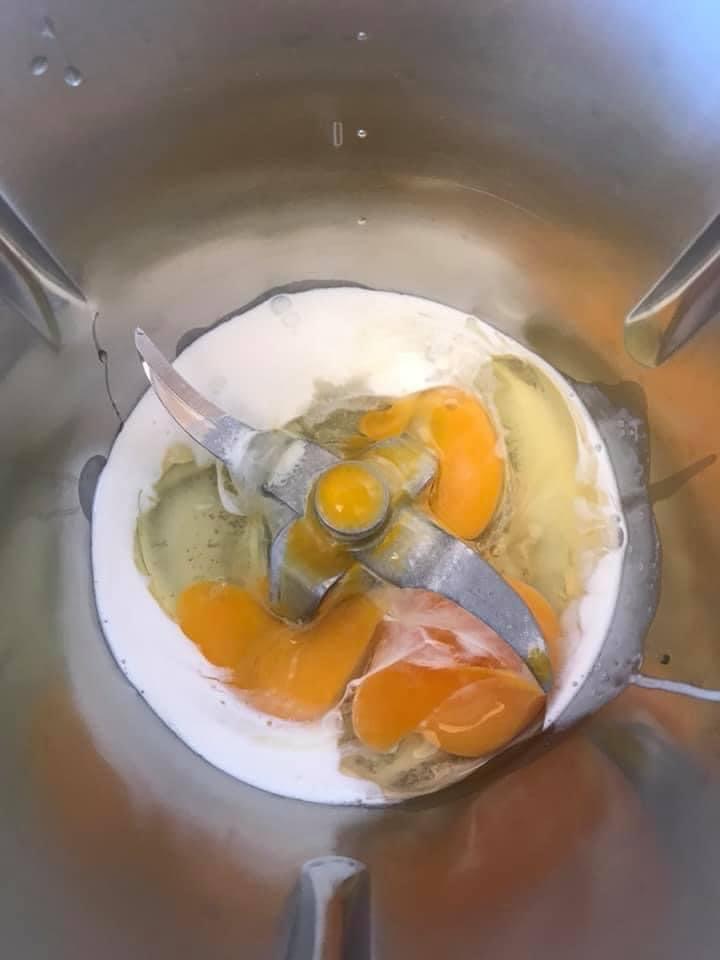 7.Puneti in bol frisca lichida, oul,zaharul și zaharul vanilat 20 sec/vit 5.